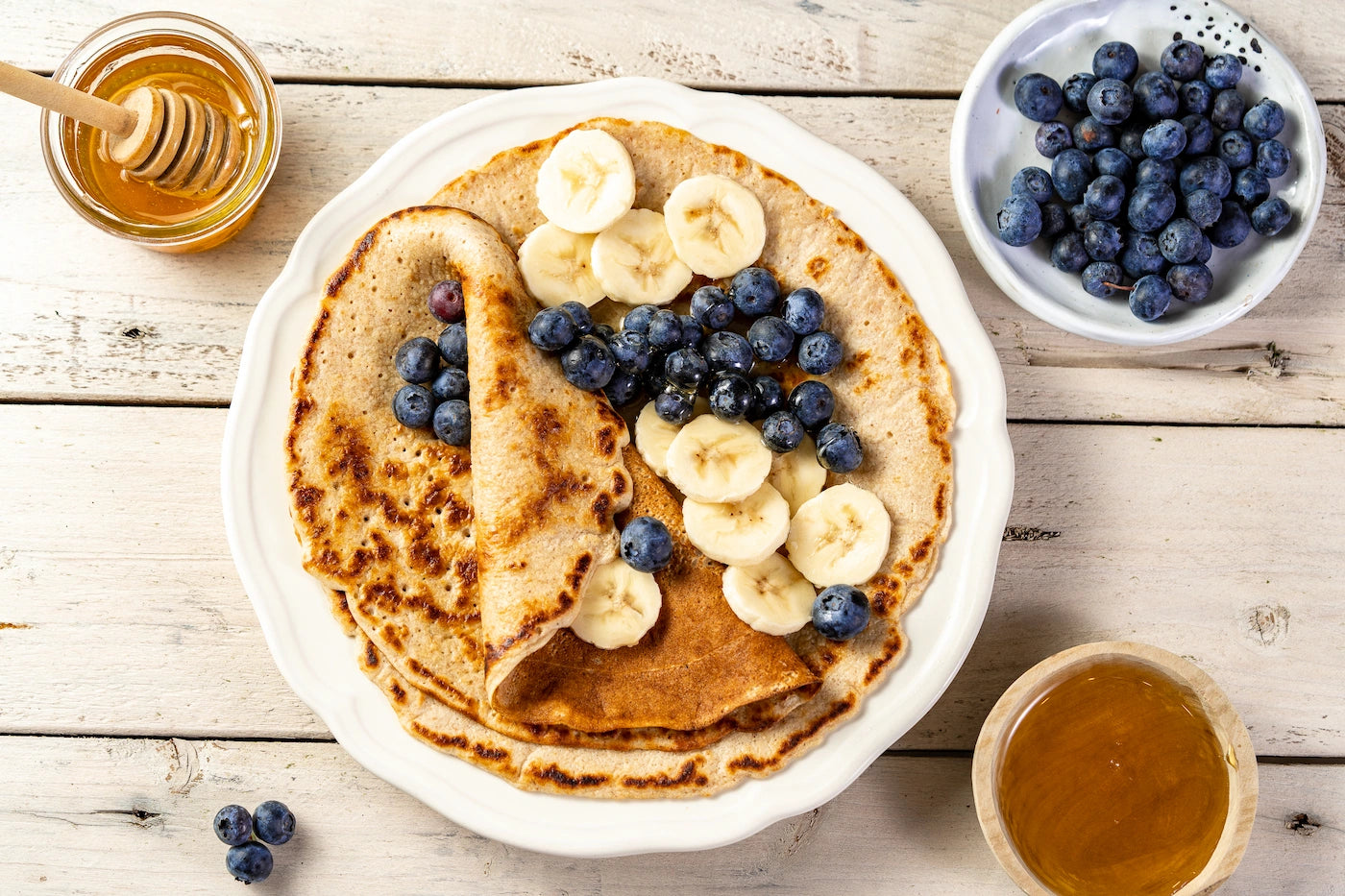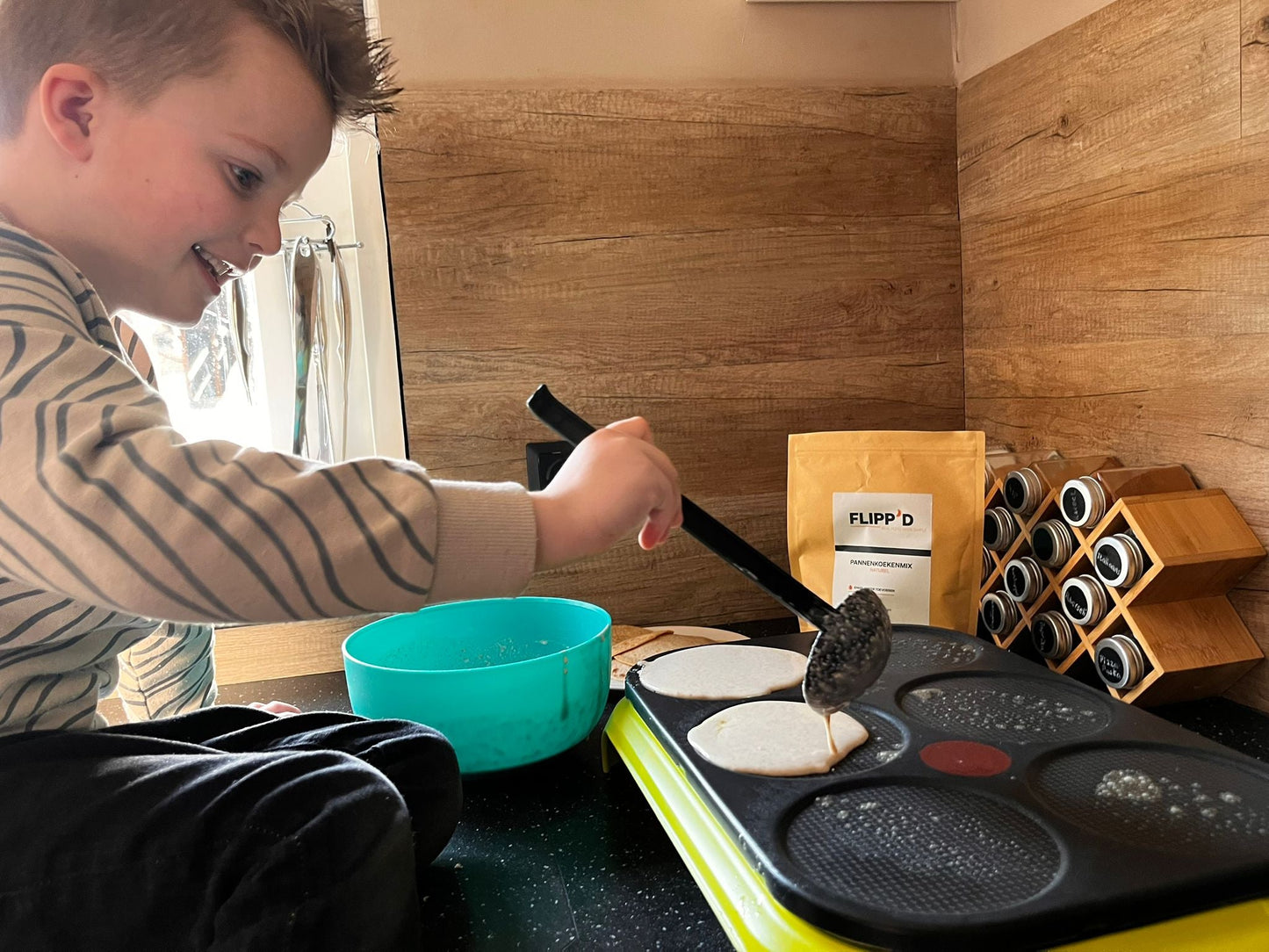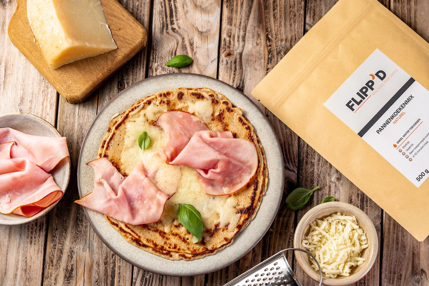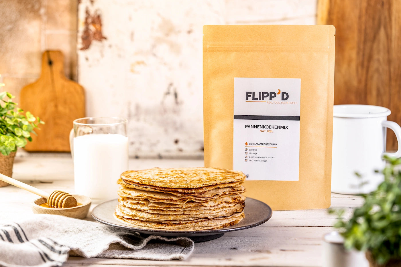 Alleen water. Geen melk en eieren nodig. Binnen 10 minuten bak je verse pannenkoeken.